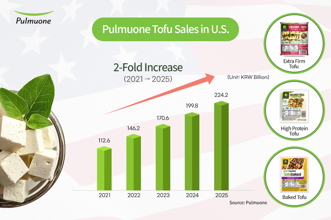 Pulmuone announced on the 19th that its U.S. subsidiary’s tofu sales last year reached a record high of KRW 224.2 billion(approx. USD 157.6 million), representing a 12.2% increase from the previous year and continuing a consistent upward trajectory.