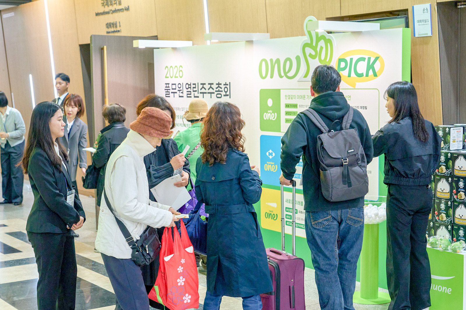 ▲ At the "2026 Pulmuone Open Shareholders' Meeting" held on the 31st at the Korea Science and Technology Convention Center in Gangnam-gu, Seoul, shareholders participate in a pre-event at the 'One Pick Lounge' prepared in the event hall lobby, selecting their most interested discussion topic.