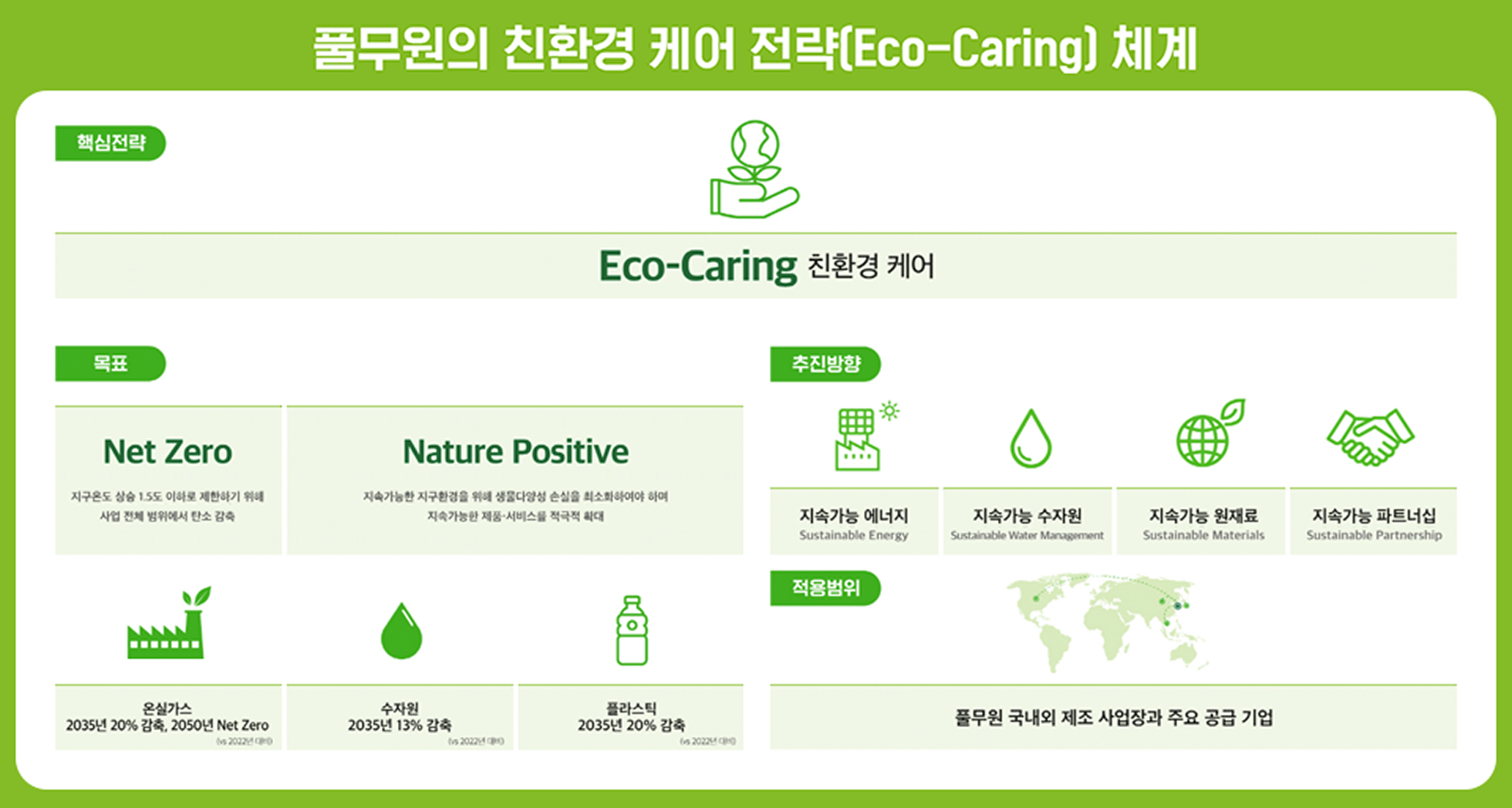 '친환경 케어(Eco-Caring)' 전략 선언...2050년까지 넷 제로 달성, 생물다양성 로드맵 수립